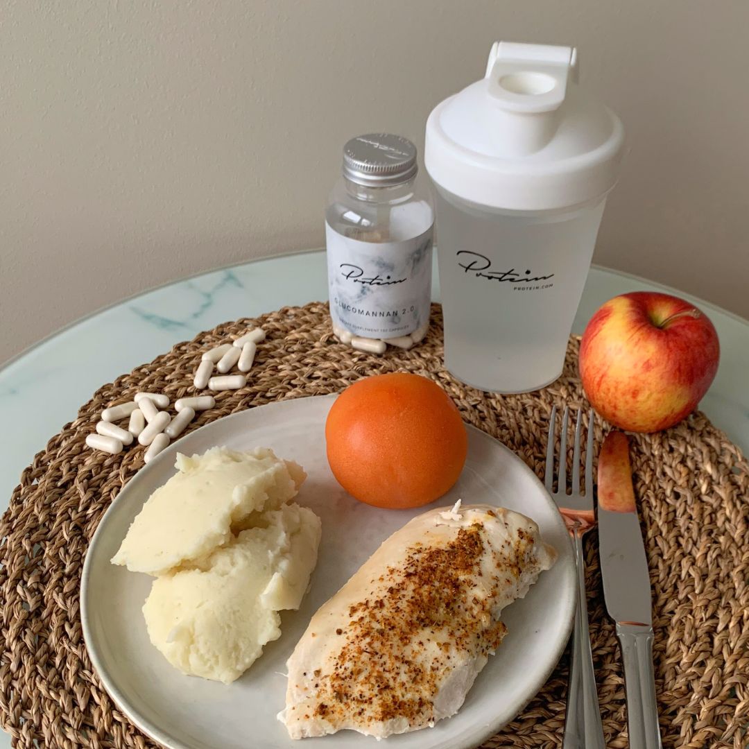 Glucomannan, as a fiber, interacts with water and dissolves in the stomach, increasing the feeling of fullness. We recommend following the instructions and taking 2 capsules with 500 ml (0.5 L) of water 30-60 minutes before breakfast, lunch, and dinner. It is important to consume the correct amount of liquid so the product reaches the stomach and works effectively.