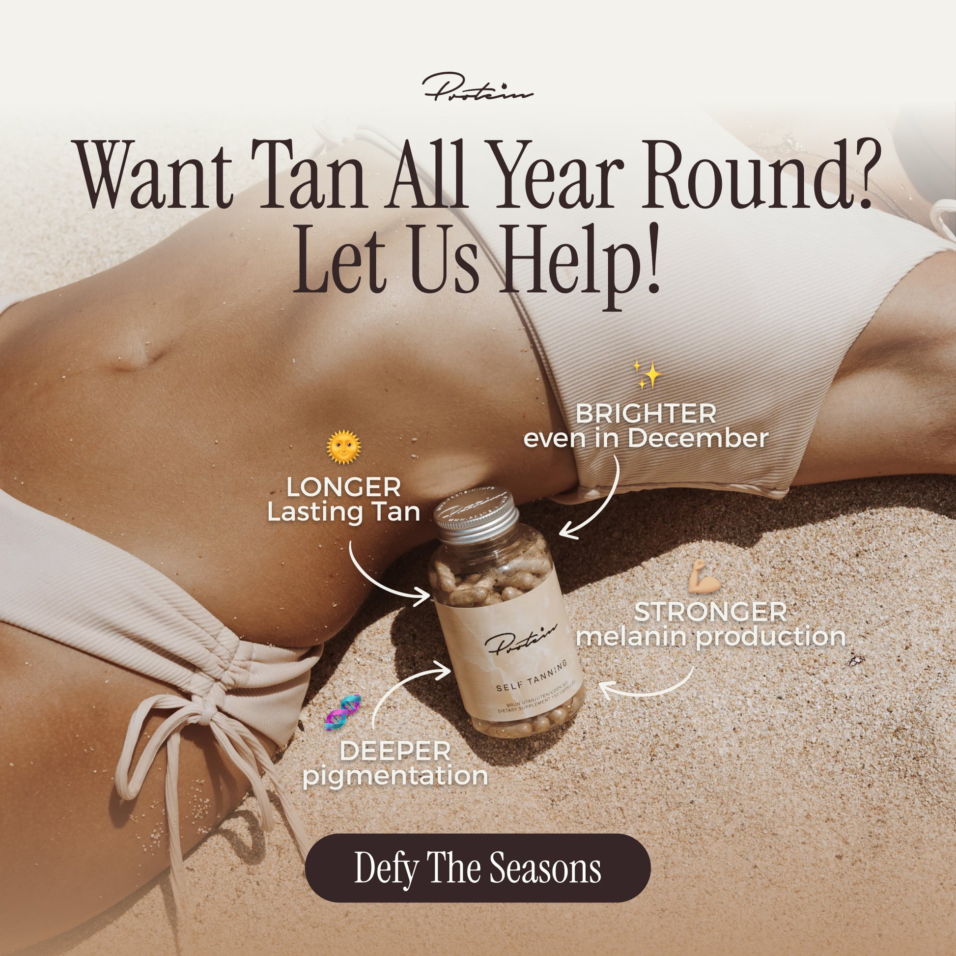 Achieving a gorgeous, sun-kissed glow shouldn’t be complicated. Our Self-Tanning Capsules are designed to naturally support and enhance your skin’s ability to tan, with or without the sun — for a radiant look that feels just as good as it looks!